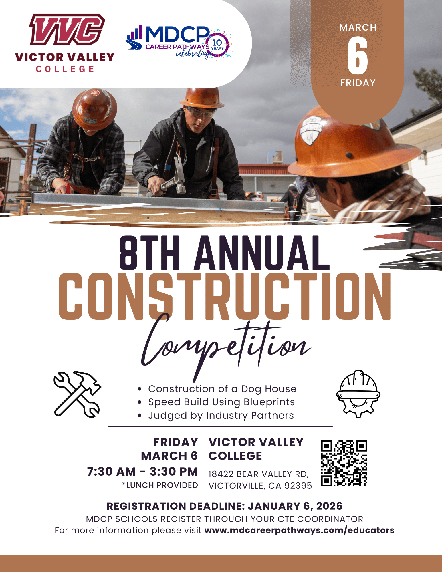 Now in its eight year, students from our high school construction programs will gather to demonstrate their craftsmanship and problem-solving skills. Judged by experts from local colleges and the construction industry, the competition promises to be both challenging and inspiring—showcasing impressive talent and building strong foundations for future careers.